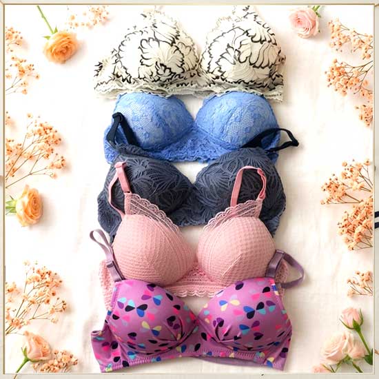 5-Piece Single Padded Push-Up Innerwear Combo – Solid Color Collection