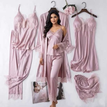 Elegant 5 Part Nightwear Set – Free Size Fit